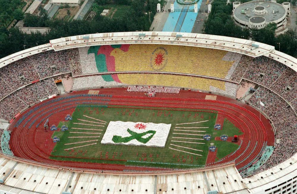 ↑1990年第十一屆亞運會在北京工人體育場開幕。