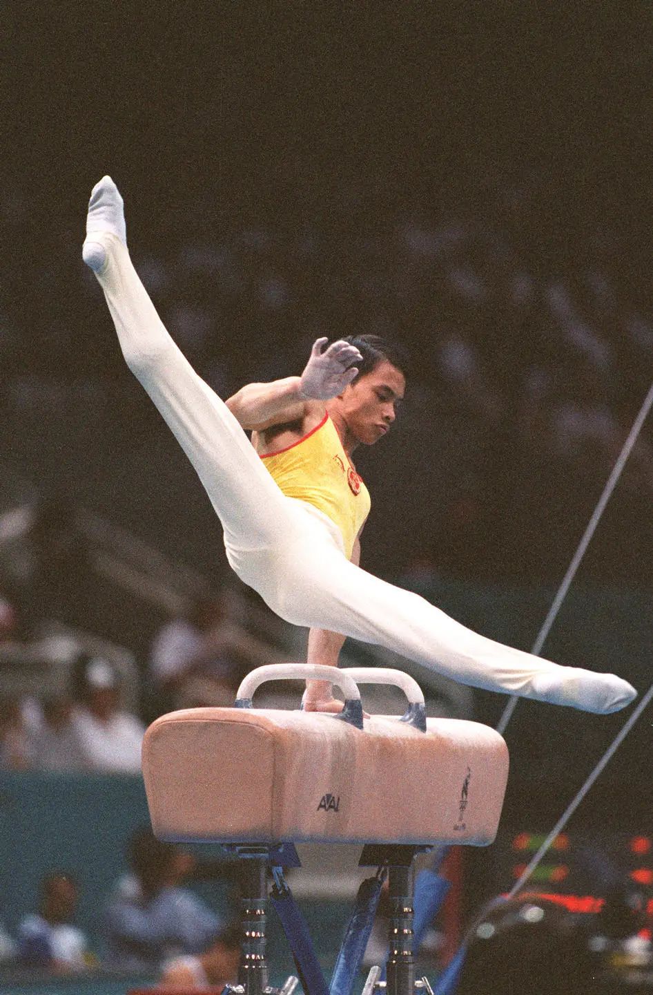 ↑李小雙奪得1996年亞特蘭大奧運會體操男子全能金牌。