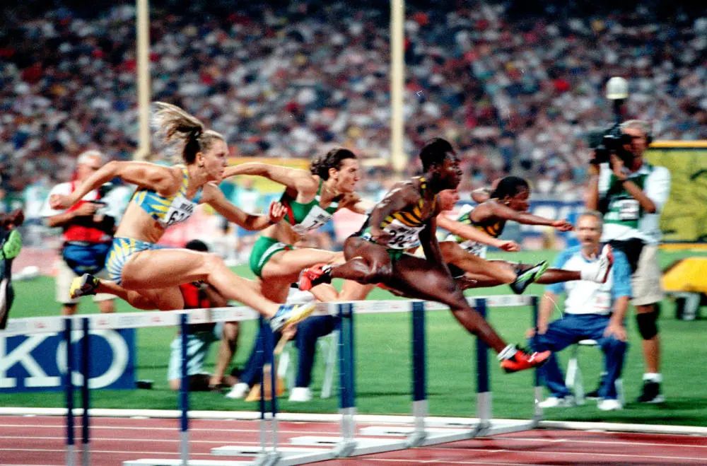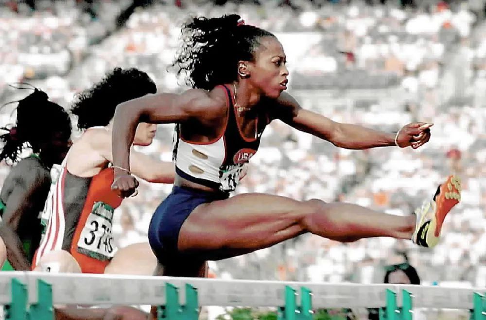 ↑美國選手德弗斯在1999年第七屆世界田徑錦標賽女子100米欄比賽中奪冠。