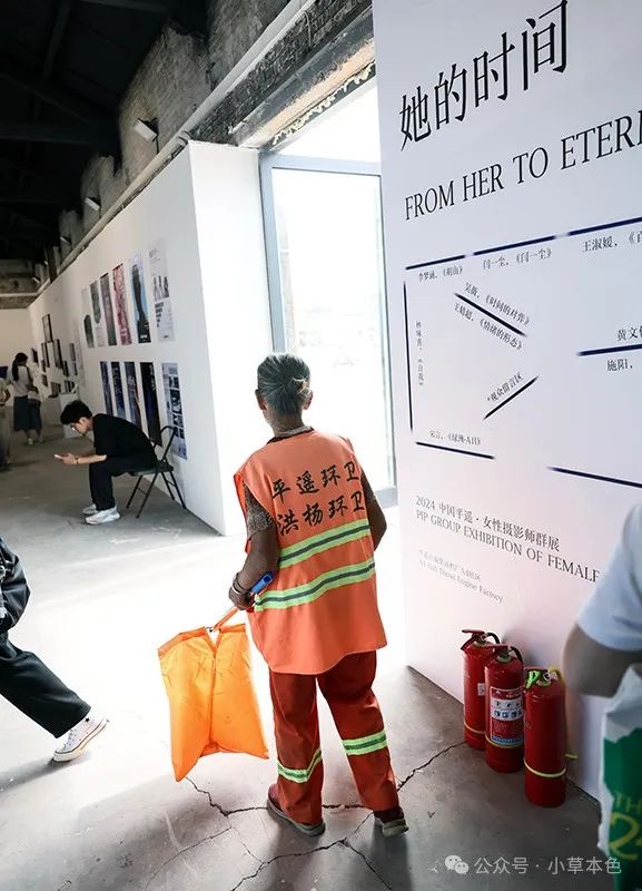 2024年9月19日,一名“輕傷不下火線”的攝影師在第24屆平遙國(guó)際攝影大展展場(chǎng)內(nèi)拍攝
