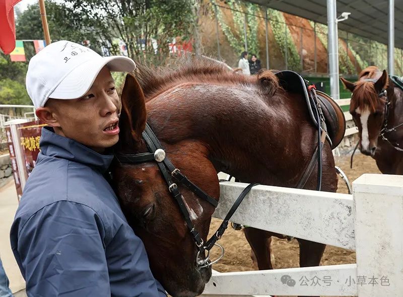 2024年12月13日,江西省萍鄉(xiāng)市湘東區(qū)和平農(nóng)場(chǎng)馬術(shù)俱樂(lè)部,一匹賽馬將自己的頭緊緊貼在騎手的懷里