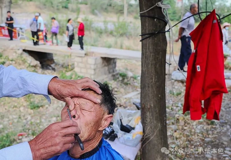 2024年6月11日,山東省淄博市峨莊大集上理發(fā)師為顧客刮臉