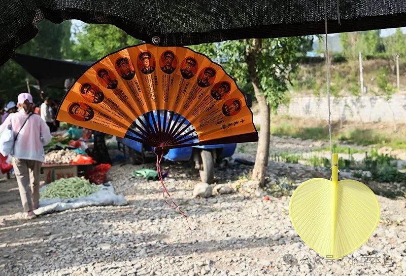 2024年6月11日,山東省淄博市峨莊大集上出售的十大元帥紙扇