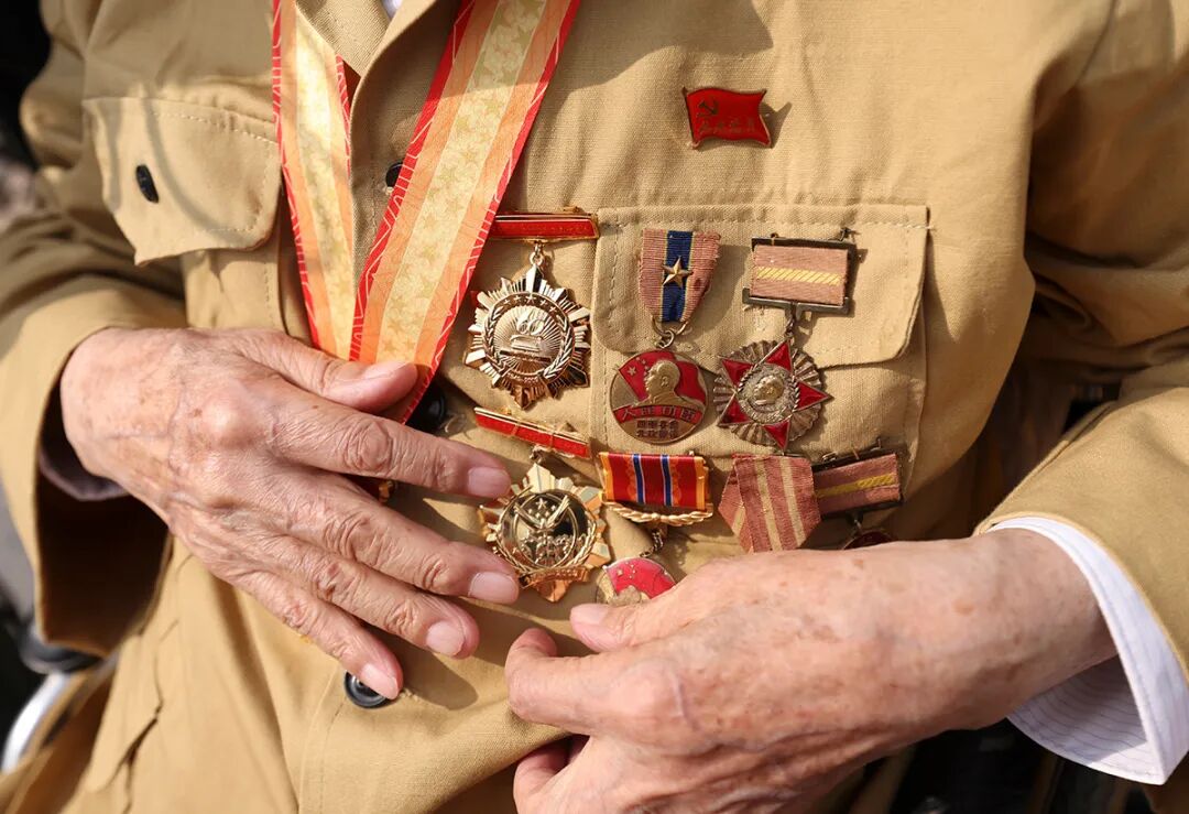 值得一提的是觀禮臺上的抗戰(zhàn)老兵們。與十年前乘坐車輛方隊不同,如今年事已高的他們被安排在城樓和觀禮臺上。97歲的抗戰(zhàn)老兵齊長友身穿戎裝,佩戴整齊的紀念章,精神矍鑠。他的女兒告訴記者,每一枚勛章都鐫刻著一段崢嶸歲月。1940年,年僅12歲的齊長友在日寇“掃蕩”中失去雙親,懷著家仇國恨加入了八路軍,在敵后根據地承擔傳遞情報的重任。從青紗帳里的游擊隊員到見證強軍偉業(yè)的老兵,這位老人身上折射出中華民族從苦難走向強盛的歷程。他微微顫抖的軍禮,令人動容。