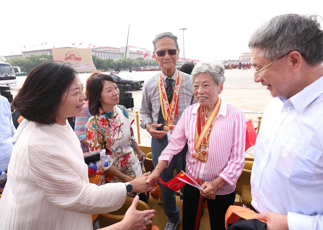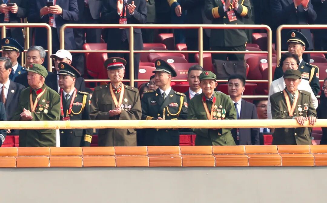 天安門城樓上受邀觀禮的老兵。