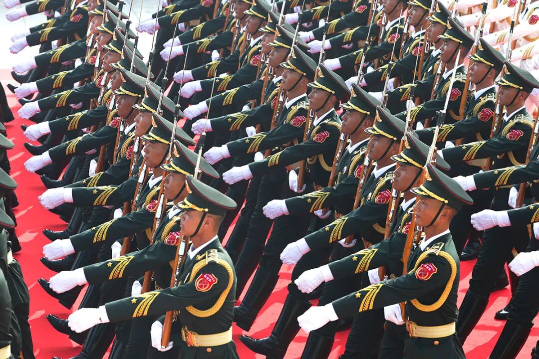 中國人民解放軍儀仗方隊闊步走來。