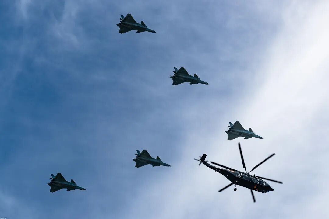 2019年新中國成立70周年閱兵中的殲20編隊(duì)。岳書華攝