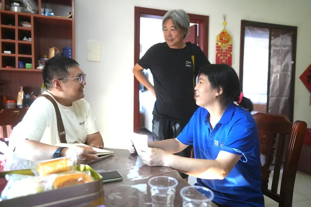 2025年10月11日,李曉果(右)來到浙江金華看望自己當(dāng)年采訪拍攝過的、被張洪斌夫婦撫養(yǎng)長大的張菊菊。王頌攝