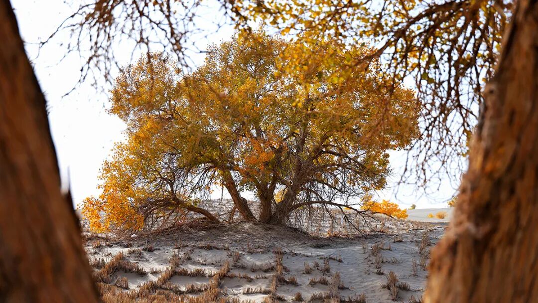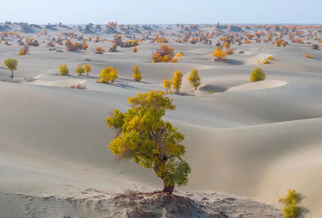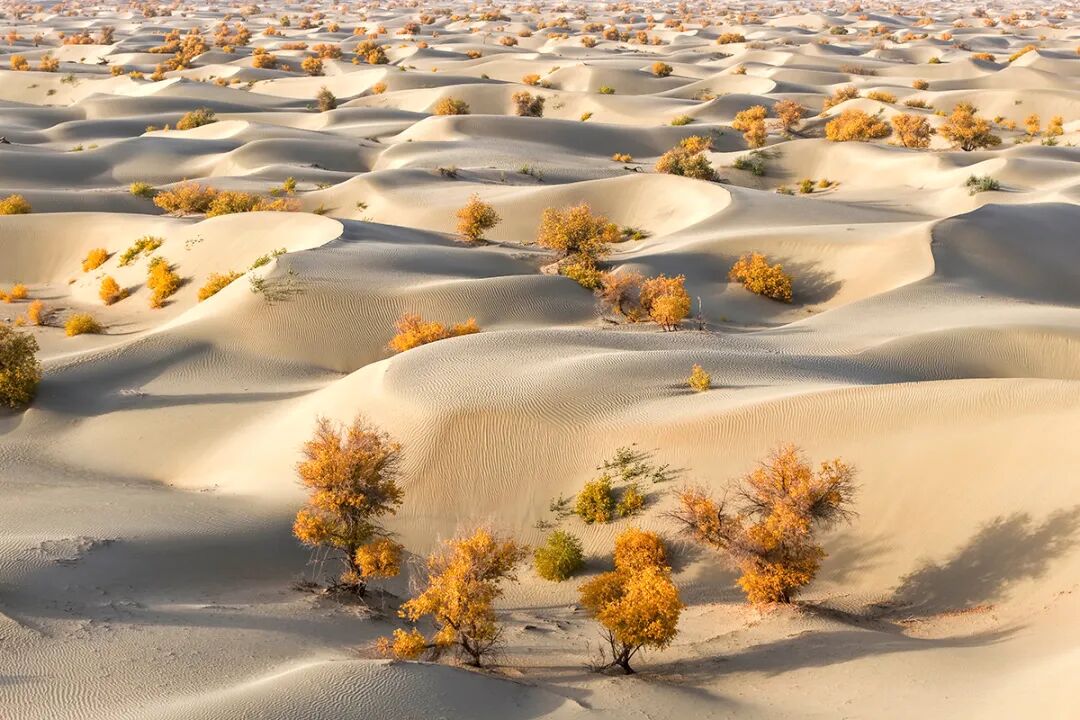 10月23日,新疆一師阿拉爾市的胡楊林迎來(lái)了最佳觀賞期,金色胡楊與塔克拉瑪干沙漠交相輝映,構(gòu)成一幅絢麗的生態(tài)畫(huà)卷。日照日?qǐng)?bào)記者李大偉 攝