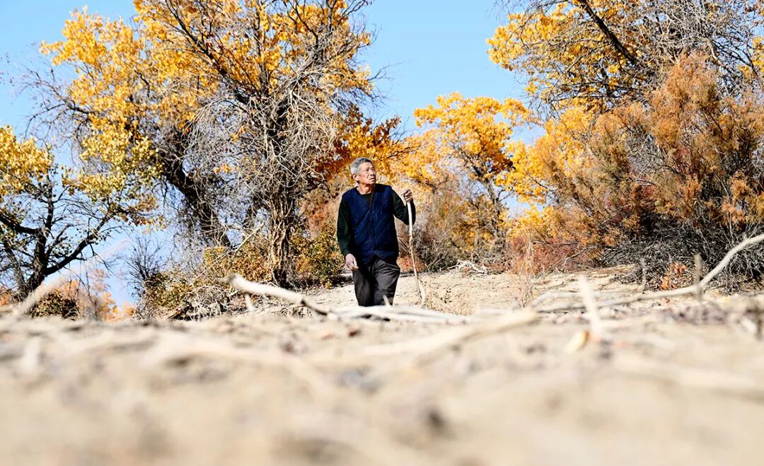 在十二團(tuán)國(guó)家級(jí)重點(diǎn)公益林管護(hù)中心,72歲的李華印穿梭在胡楊林中進(jìn)行巡林。干了16年護(hù)林員的李華印于2014年退休后,繼續(xù)堅(jiān)持巡林十余個(gè)年頭。 人民政協(xié)報(bào)記者 齊波 攝