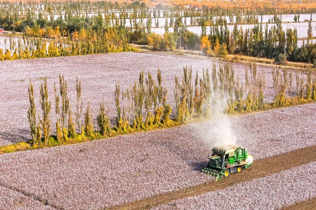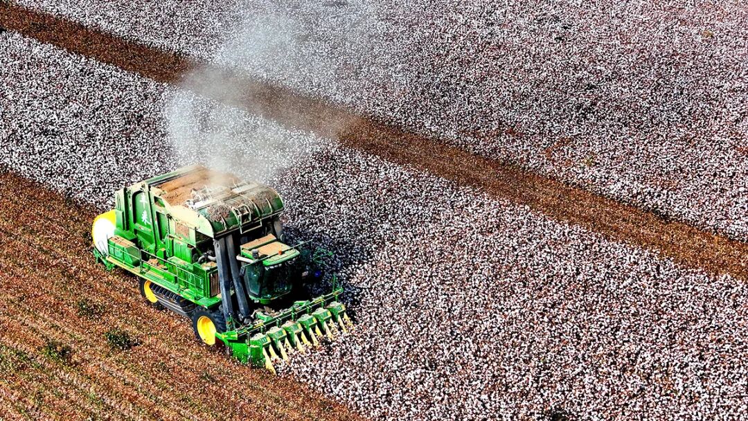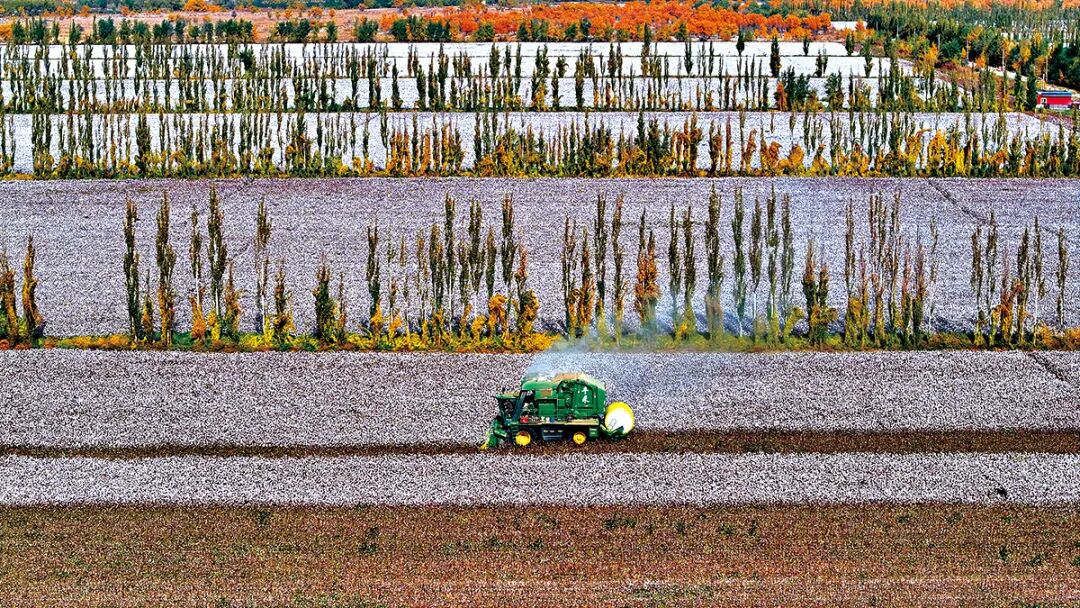 10月25日,新疆一師十二團(tuán)的棉花種植地,大型機(jī)械化采棉機(jī)正在作業(yè)。近年來(lái),一師阿拉爾市各植棉團(tuán)場(chǎng)大力推行農(nóng)業(yè)現(xiàn)代化轉(zhuǎn)型,將科技元素深深植入土地,引領(lǐng)棉花產(chǎn)業(yè)從傳統(tǒng)數(shù)量規(guī)模型向質(zhì)量效益型現(xiàn)代農(nóng)業(yè)轉(zhuǎn)變。 日照日?qǐng)?bào)記者 李大偉 攝