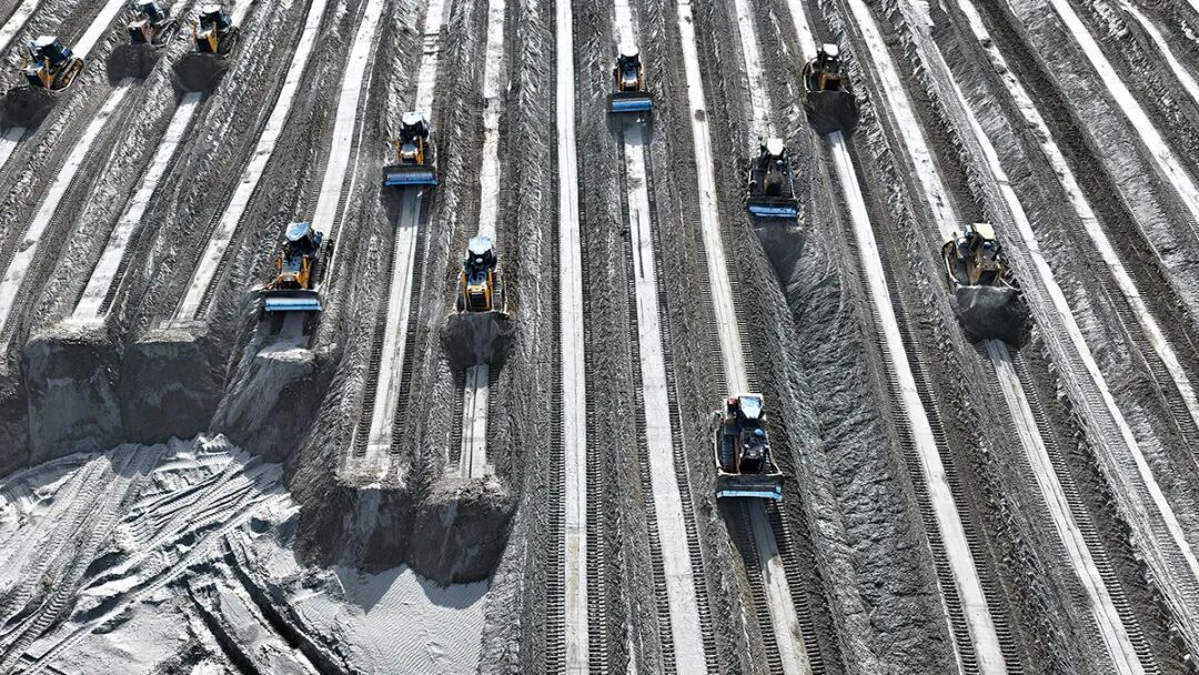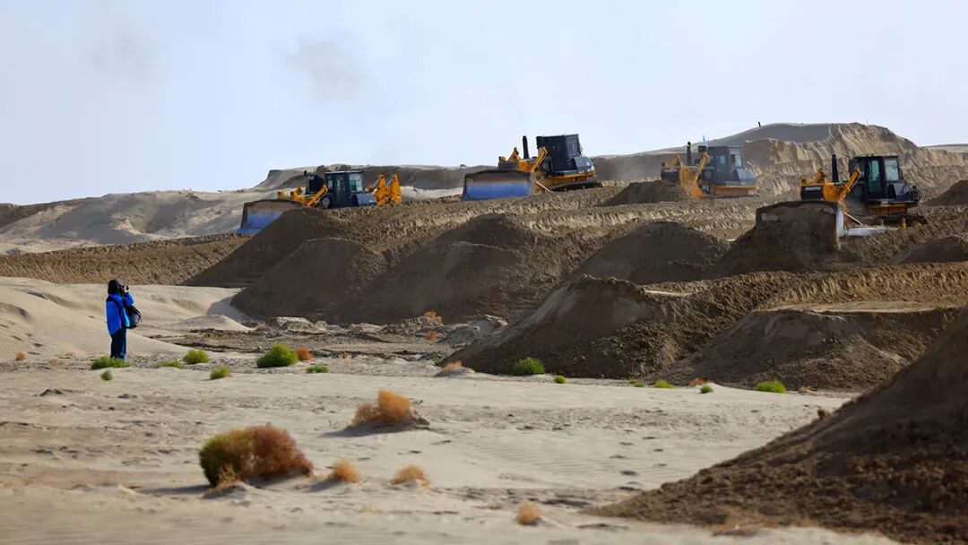 10月24日,第一師阿拉爾市塔里木河干流生態(tài)綜合治理項(xiàng)目現(xiàn)場(chǎng),數(shù)十臺(tái)推土機(jī)依次排開(kāi)平整土地。該項(xiàng)目自2021年啟動(dòng)以來(lái),至今累計(jì)建設(shè)規(guī)模已超 50 萬(wàn)畝。 科普時(shí)報(bào)記者 季春紅 攝