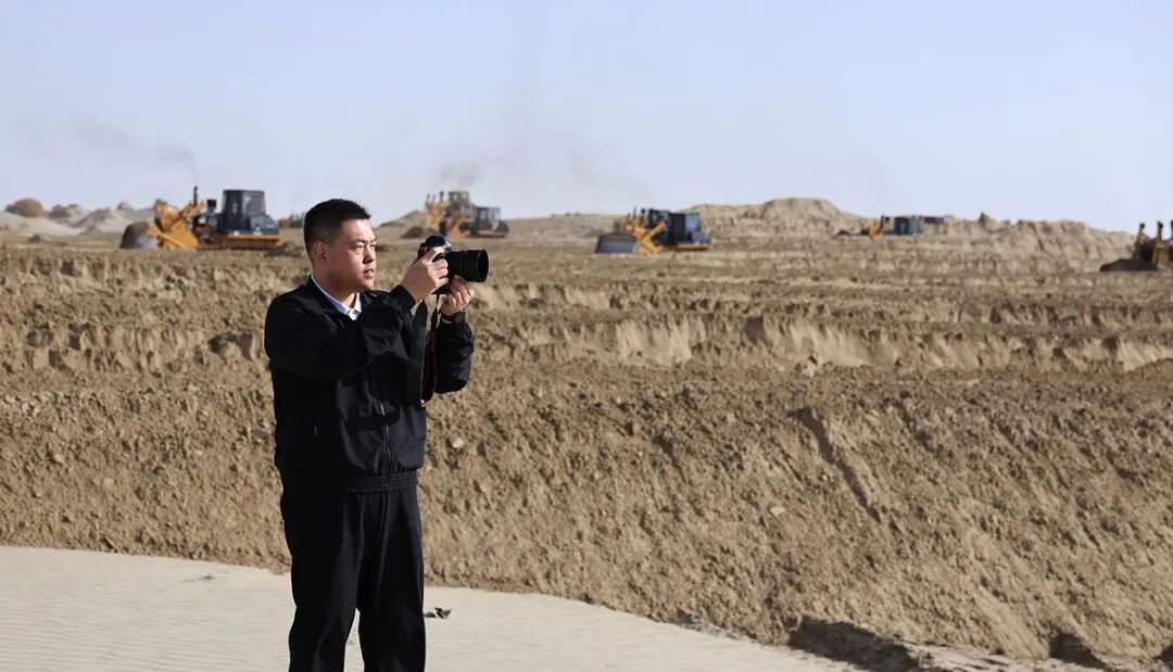 10月24日,中新社攝影部原副主任任海霞在塔河干流生態(tài)綜合治理項(xiàng)目施工現(xiàn)場(chǎng)采訪。中國(guó)冶金報(bào)記者 顧學(xué)超攝
