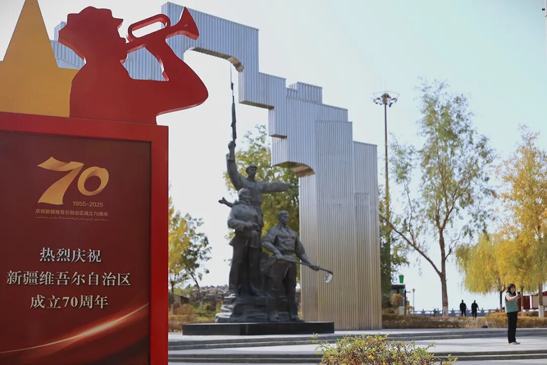 10月25日,一師阿拉爾市知青紀(jì)念林內(nèi),市民在雕像前自拍留影。中國(guó)冶金報(bào)記者 顧學(xué)超攝