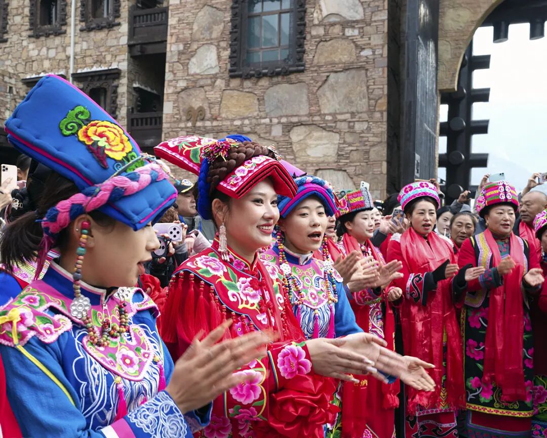 11月21日,四川省阿壩藏族羌族自治州茂縣的中國古羌城舉行了一場獨具民族風(fēng)情的婚禮。在莊重的開城門儀式中,新人與羌族同胞共同見證了這一充滿文化底蘊的時刻。儀式在號角聲中拉開帷幕,背靠水西、腳抵岷江的古城門徐徐打開,羌族群眾身著傳統(tǒng)服飾齊聚一堂,以隆重的禮儀和歡快的歌舞喜迎新人,展現(xiàn)了羌族文化的獨特魅力。這場婚禮不僅是一場個人的喜慶儀式,更是羌族傳統(tǒng)文化的一次生動展示。通過傳統(tǒng)儀式與歌舞,羌族群眾傳遞了對新人的美好祝福,也讓這一古老民族的風(fēng)俗得以傳承和弘揚。