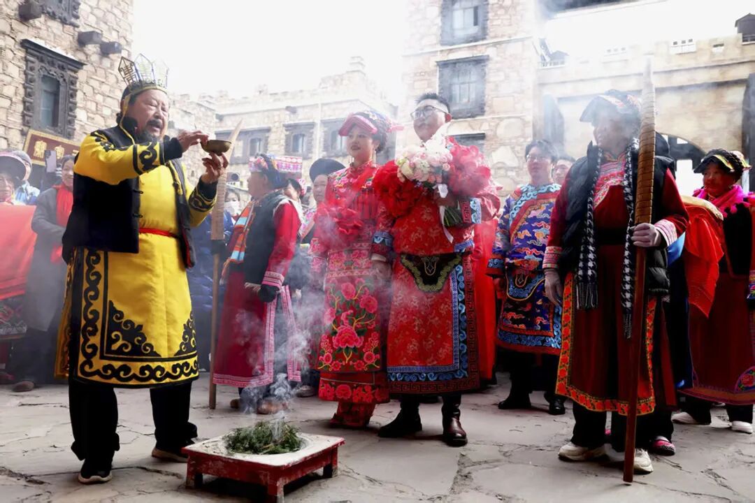 婚禮上的羌族傳統(tǒng)祈福儀式。