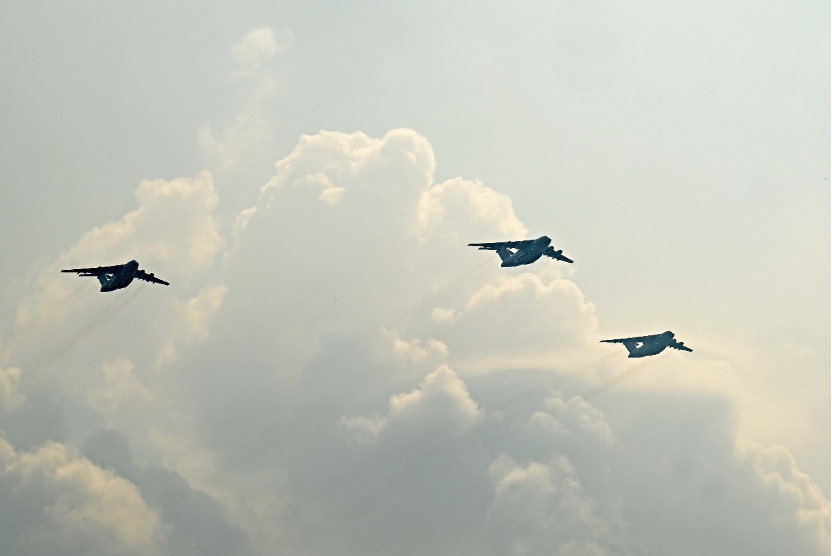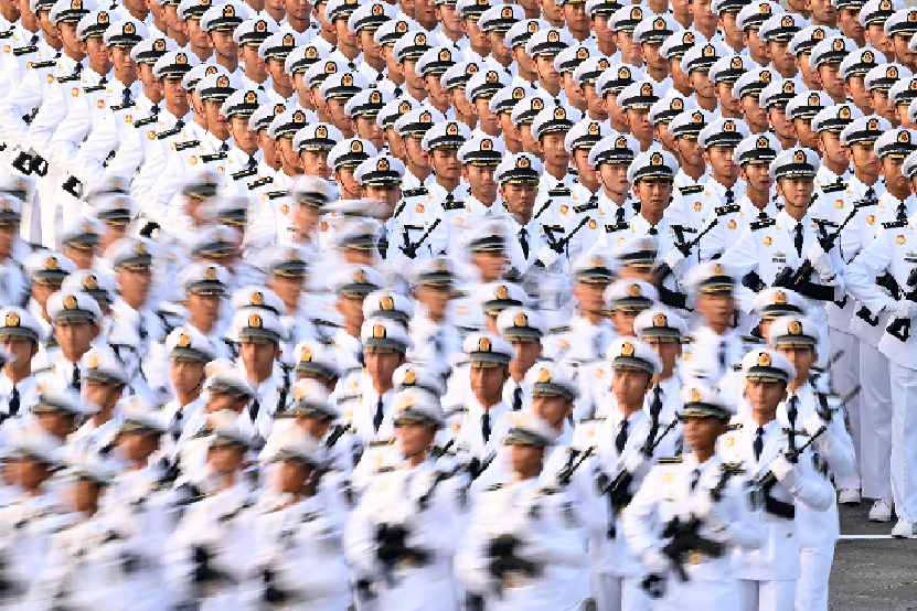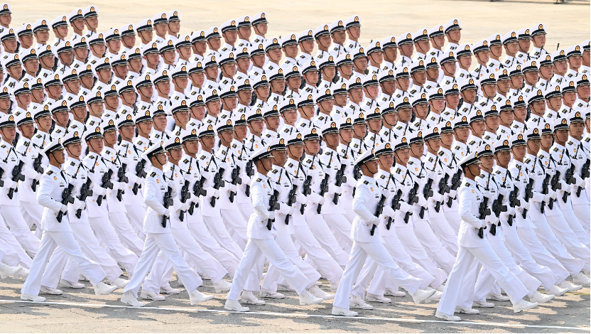 海軍方隊(duì)在正式閱兵前的最后一次訓(xùn)練。